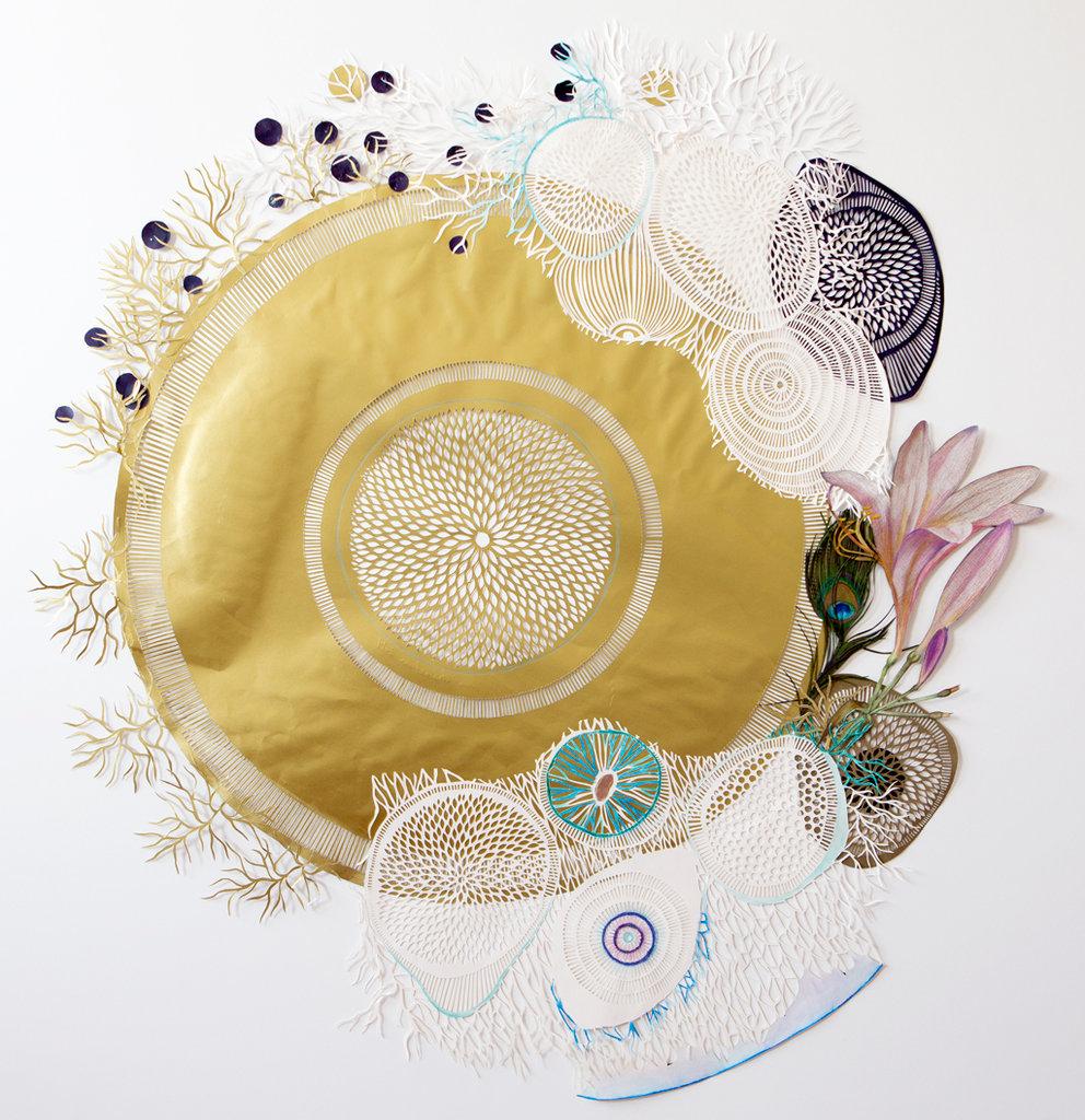 Eggshells, cut out paper, watercolour pencils, drawing in a bell jar