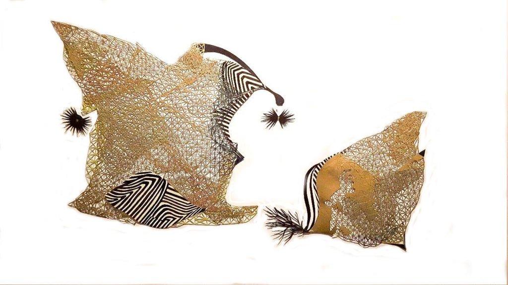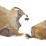 Eggshells, cut out paper, watercolour pencils, drawing in a bell jar